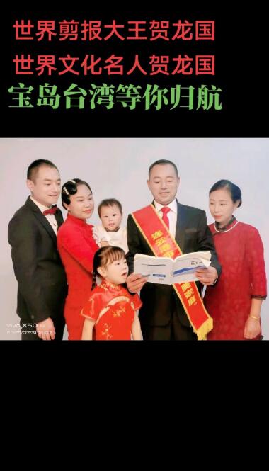龙年有福,甲辰年对于贺龙国一家来说,无疑是幸福的一年。春节前夕,一家人相聚在南京都市圈的新居。他们首先走进了正规的照相馆,拍了一组经过设计师精心设计的全家福。贺龙国在抖音上直播时兴奋地说道:“大家看看,这家人是江苏省书香家庭,看看都像谁?”人们一看便知,这家人可不就都像那个带着授带的剪报大王贺龙国嘛!再瞧瞧贺龙国和他的儿子,简直像亲弟兄。虽说贺龙国已六十多岁,但经过化妆师巧手的精心装扮,他竟像个年轻的高加林,脸上洋溢着傻傻的笑容,哪里像个进入老龄社会的老头儿哟!