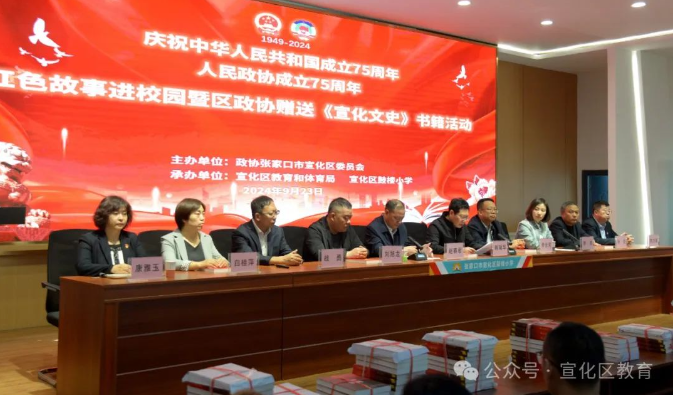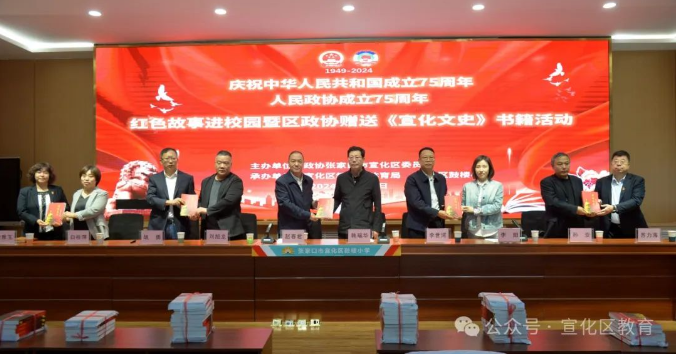 为庆祝中华人民共和国成立75周年和人民政协成立75周年,9月23日,宣化区政协在鼓楼小学举行红色故事进校园暨区政协赠送文史书籍活动。