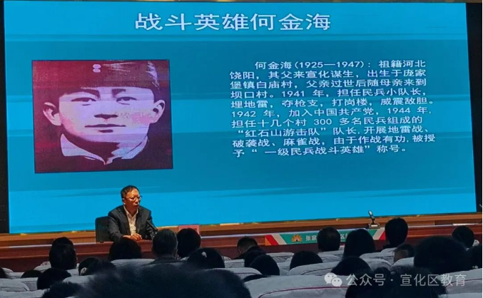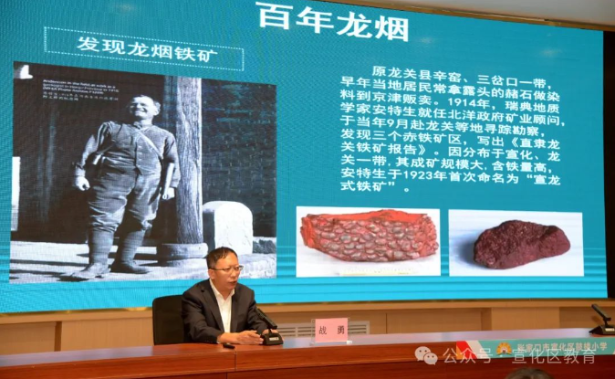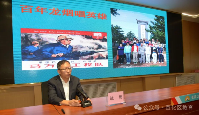 宣化一中战勇副校长讲述宣化区百年龙烟铁矿的光辉发展历程及“一级民兵战斗英雄何金海”和“全国劳模马万水”的故事。
