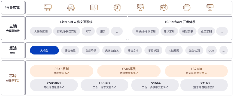 聆思科技在这一行业大趋势下,面向大模型落地的实际场景,结合公司长期以来在芯片及算法领域的充分积累,推出了量身打造的「芯云体系」。