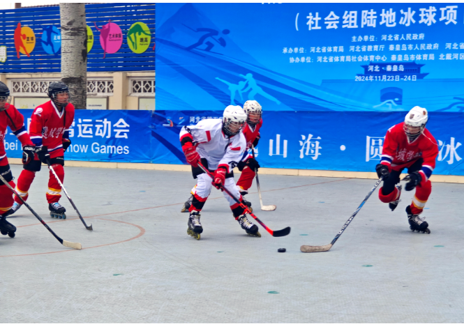 日前,在刚刚结束的2024年河北省第五届冰雪运动会陆地冰球比赛中,宣化区冰球队代表张家口市获得E组冠军。
