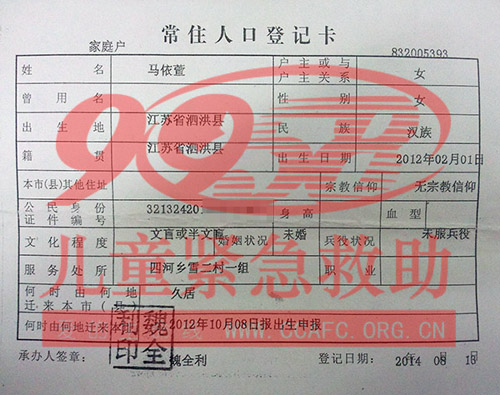 马依萱,女孩,江苏人,出生于2012年2月1日,白血病。