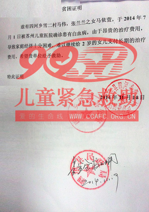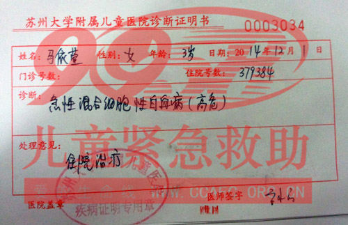 2岁半急性骨髓性白血病儿童马依萱的求救信