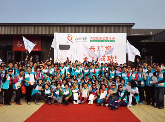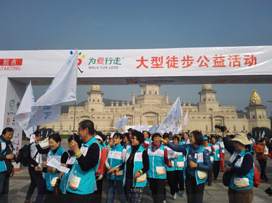 11月14日,在风景秀丽的无锡灵山,由3500余人组成的600余支爱心队伍统一集结,参加“为爱行走”大型徒步公益活动,通过行走的方式为公益筹款。来自北京、上海、天津、江苏、山东、河北、内蒙、黑龙江、湖北等不同城市和地区的140位失独老人组成的35支“尚善暖心队”携手完成了15公里的越野徒步挑战,不仅展现了失独群体的自强不息,同时也为“2016暖心年夜饭”公益项目筹集善款,让1000名和他们一样的失独者能够在2016年除夕之夜欢聚一堂,一起度过一个温暖祥和的春节。